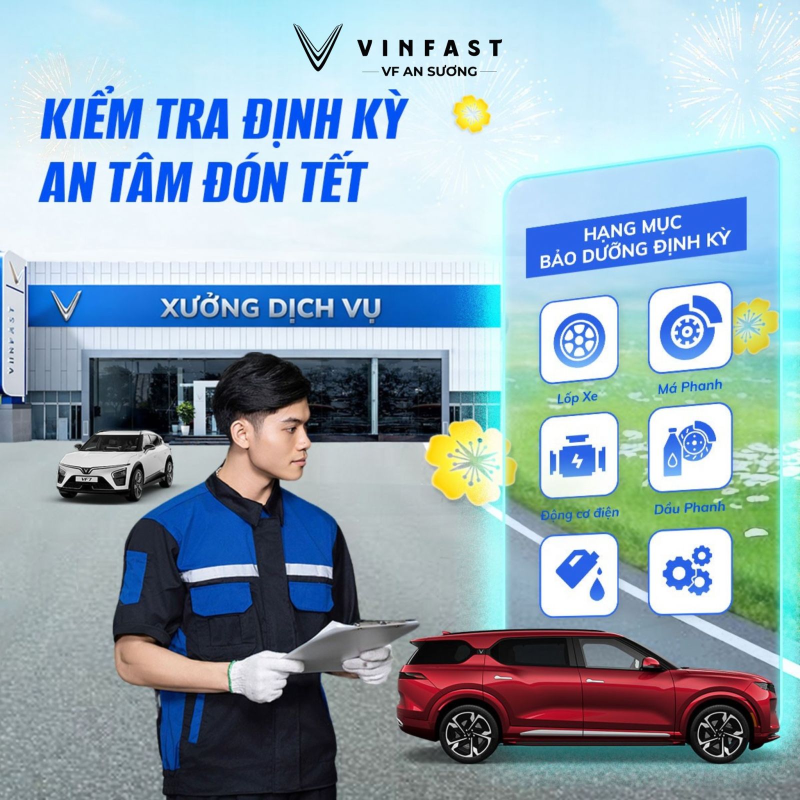 - Service: Bảo dưỡng, sửa chữa theo quy trình VinFast