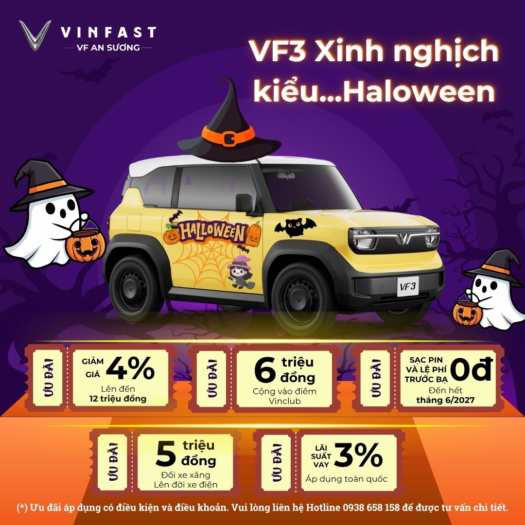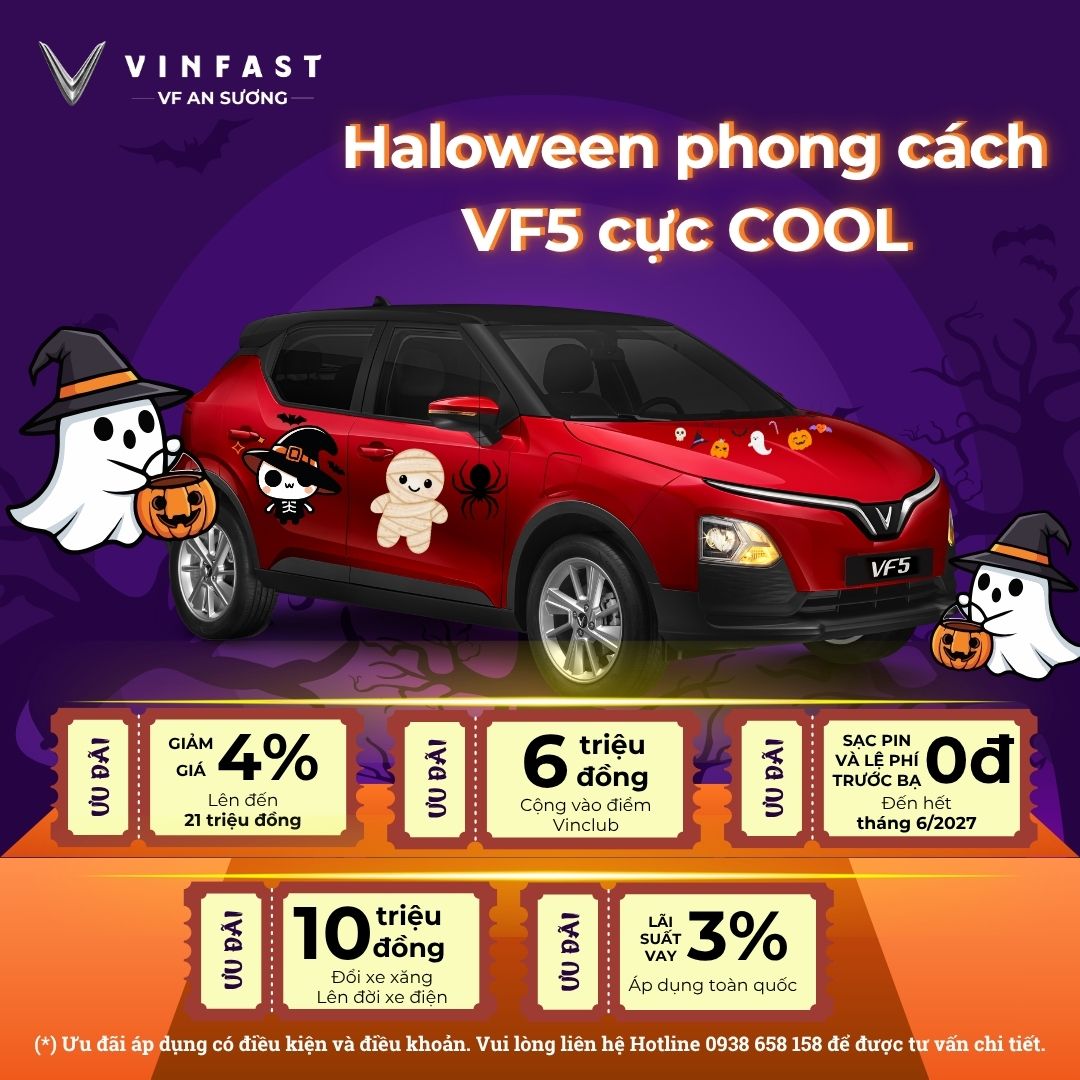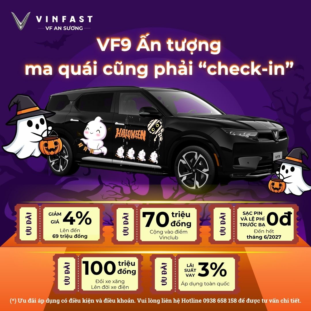 Halloween 2025 đang đến gần – thời điểm của những bất ngờ và sự sáng tạo. Hòa cùng không khí sôi động đó, VinFast VF An Sương mang đến chương trình ưu đãi đặc biệt dành cho khách hàng yêu thích xe điện, với nhiều phần quà và chính sách hấp dẫn trên toàn bộ các dòng xe VinFast.