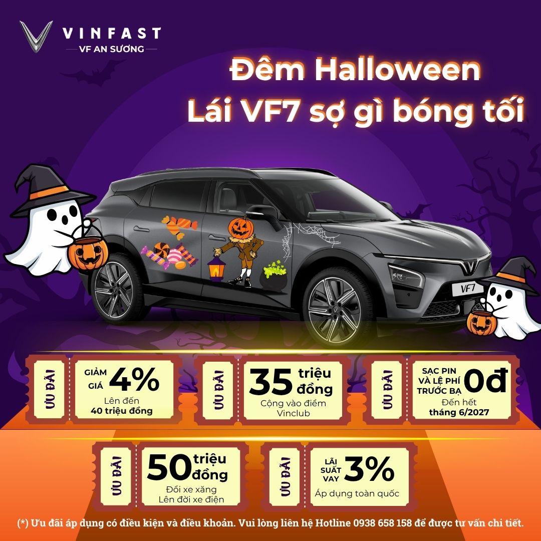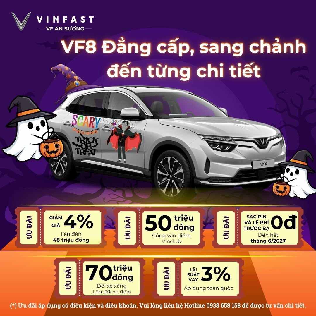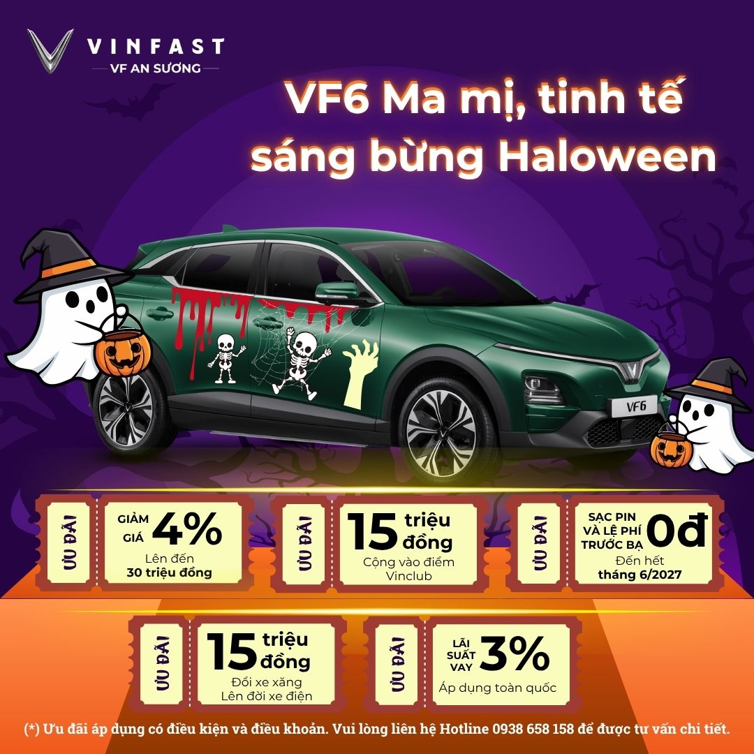 Halloween 2025 đang đến gần – thời điểm của những bất ngờ và sự sáng tạo. Hòa cùng không khí sôi động đó, VinFast VF An Sương mang đến chương trình ưu đãi đặc biệt dành cho khách hàng yêu thích xe điện, với nhiều phần quà và chính sách hấp dẫn trên toàn bộ các dòng xe VinFast.