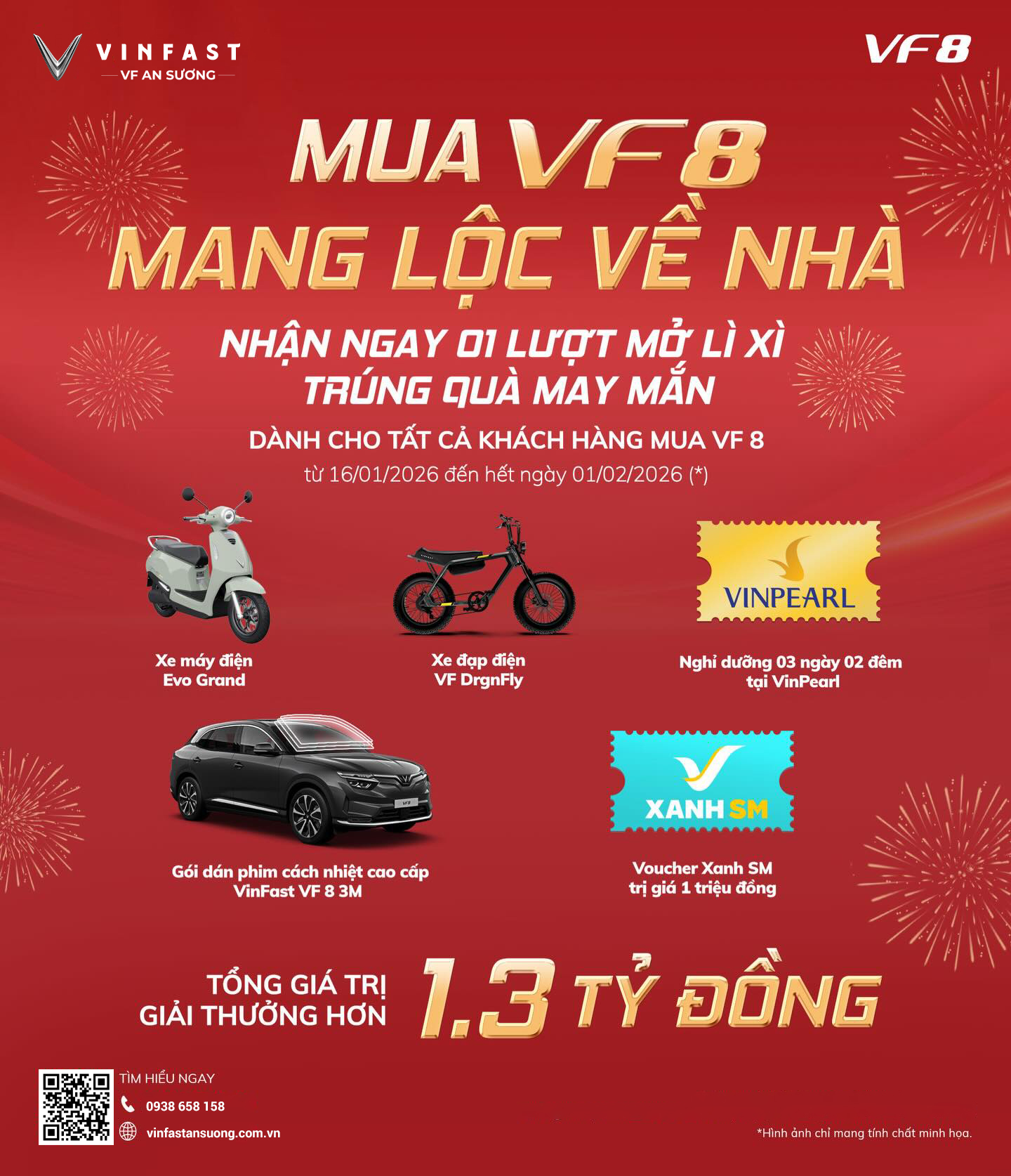 Nhân dịp đầu năm mới, VinFast chính thức triển khai chương trình “Mua VF 8 – Mang Lộc Về Nhà”, dành riêng cho khách hàng mua và nhận xe VinFast VF 8 trong thời gian từ 16/01 đến 01/02/2026.