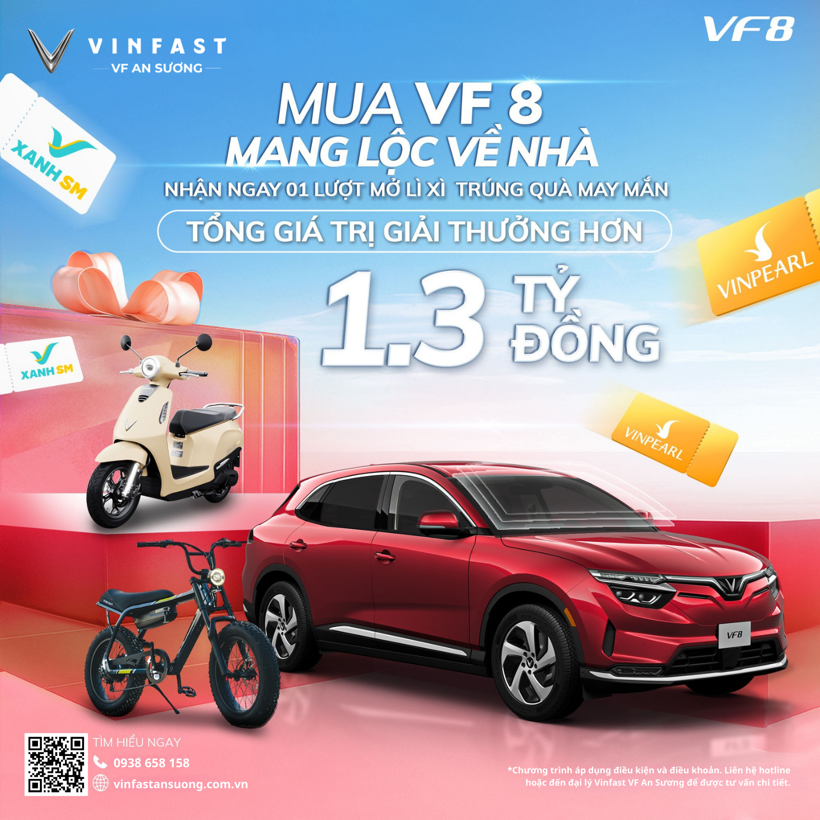 Khách hàng mua VF 8 và hoàn tất nhận xe trong thời gian áp dụng chương trình sẽ có cơ hội tham gia mở lì xì may mắn, với các phần quà giá trị gồm: