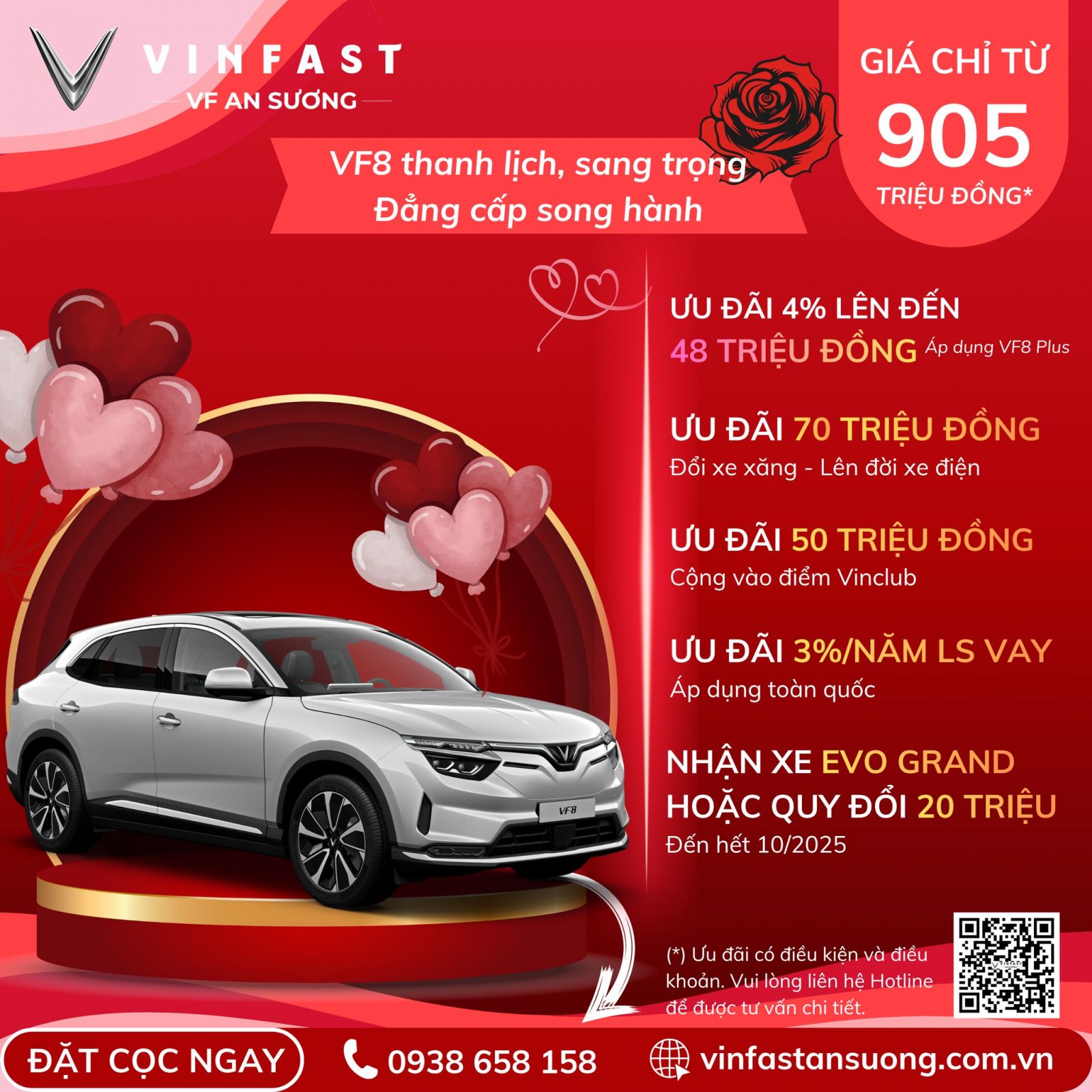 Ngày Phụ Nữ Việt Nam 20/10 không chỉ là dịp tri ân mà còn là cơ hội để bạn sở hữu chiếc xe điện VinFast yêu thích với mức giá và chính sách tốt nhất trong năm. Hãy đến ngay VinFast An Sương để trải nghiệm – nhận ưu đãi, quà tặng và tận hưởng niềm vui lái xe điện bền vững cùng thương hiệu Việt.