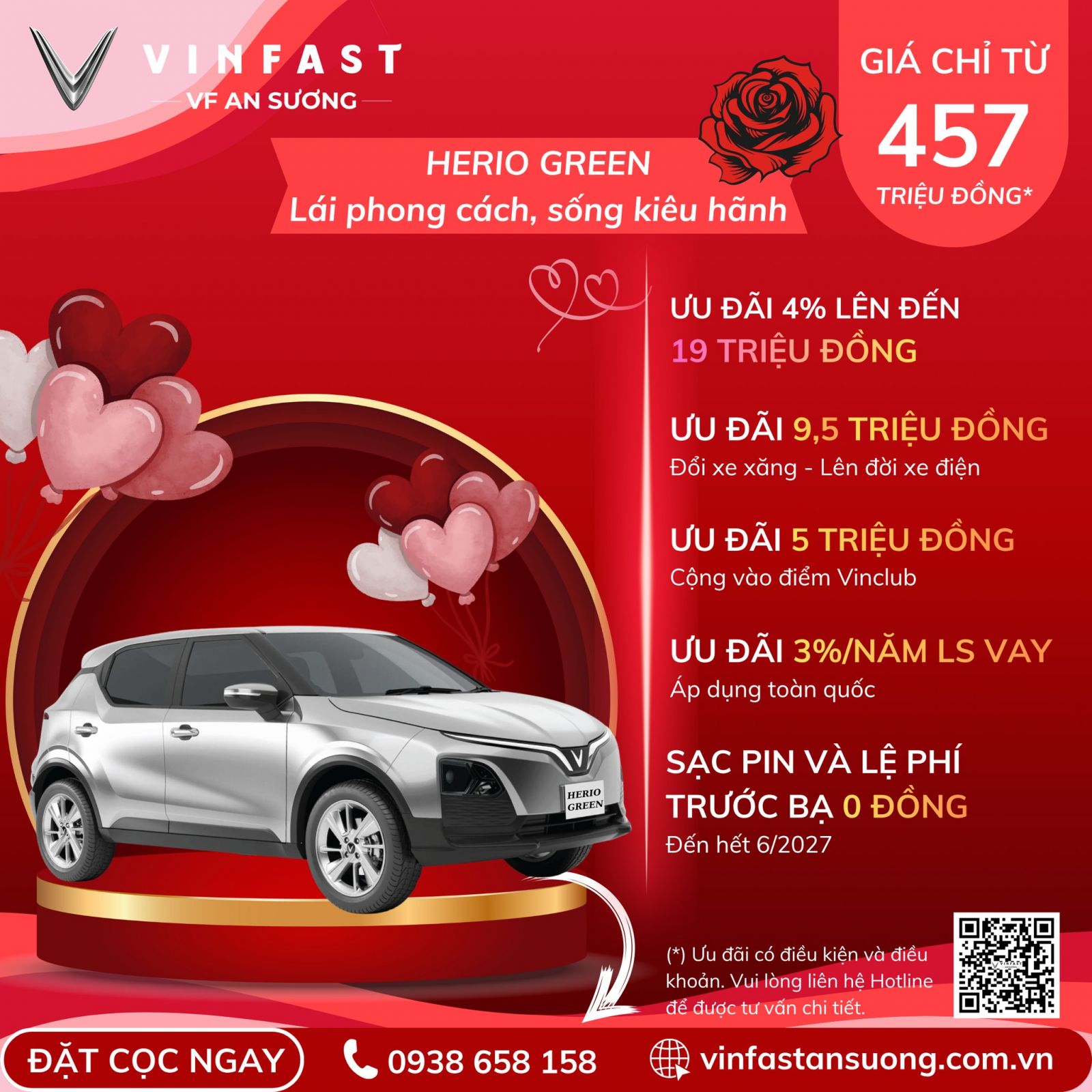 - Hỗ trợ trả trước 0 đồng cho các mẫu xe VF3, VF5 và Herio Green.
